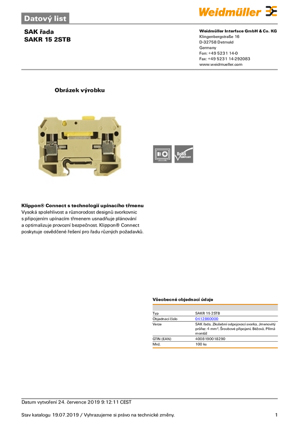 Weidmüller 0412860000 Złączka rozłączająca wielobarwny 100 szt.