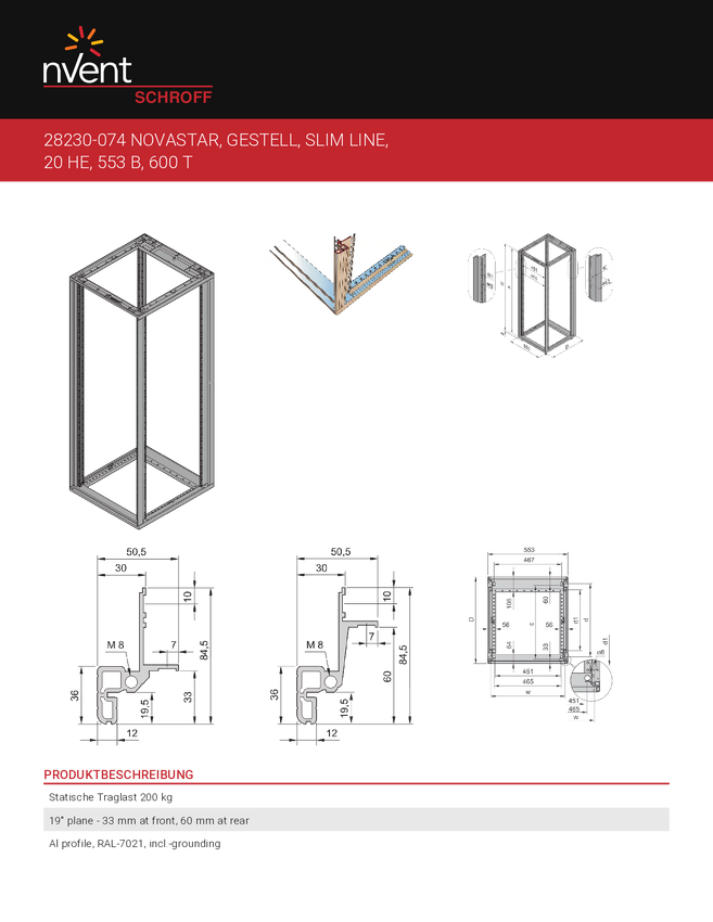 nVent SCHROFF 28230048 Rama szafki 1967 x 500 wielobarwny 1 szt.