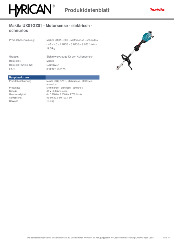 Narzędzie wielofunkcyjne akumulatorowe Makita S_0380_7114625 UX01GZ01 40 V