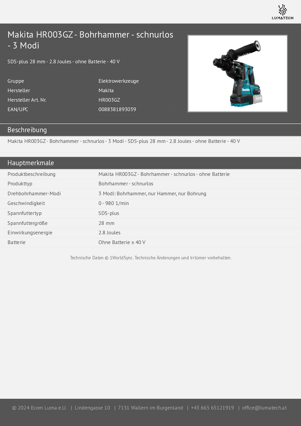 Młot wielofunkcyjny, akumulatorowy Makita S_0380_6801592 HR003GZ 1 szt.