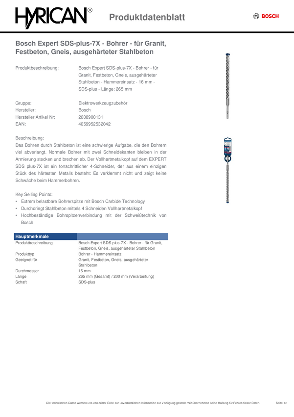 Wiertło udarowe Bosch Accessories EXPERT SDS plus-7X 2608900131 16.00 mm 1 szt.