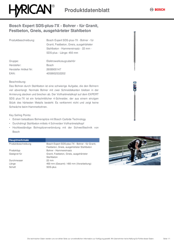 Wiertło udarowe Bosch Accessories EXPERT SDS plus-7X 2608900147 22.00 mm 1 szt.