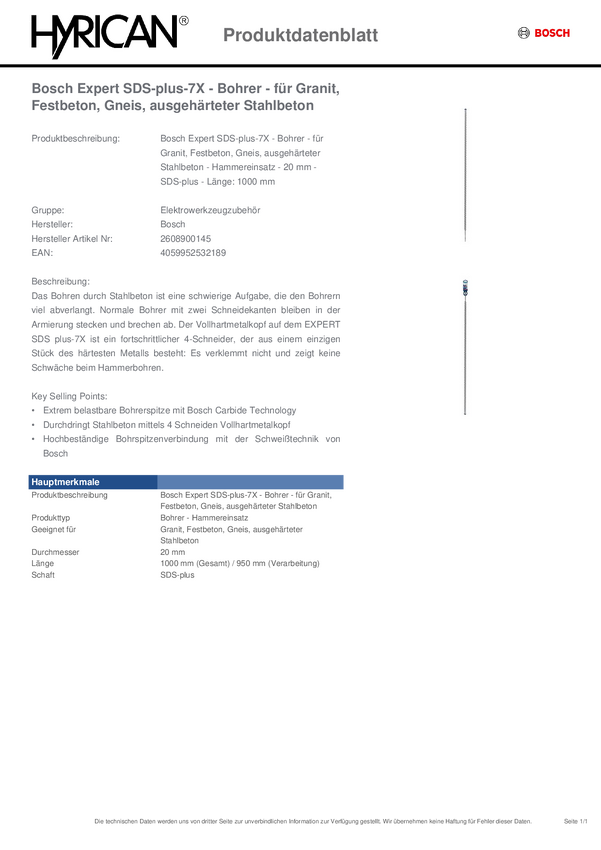 Wiertło udarowe Bosch Accessories EXPERT SDS plus-7X 2608900145 20.00 mm 1 szt.