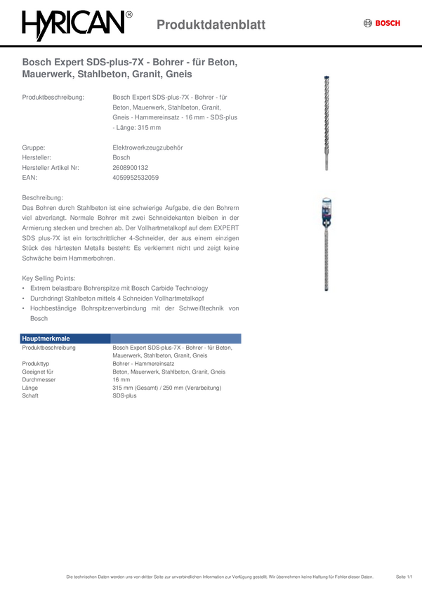 Wiertło udarowe Bosch Accessories EXPERT SDS plus-7X 2608900132 16.00 mm 1 szt.