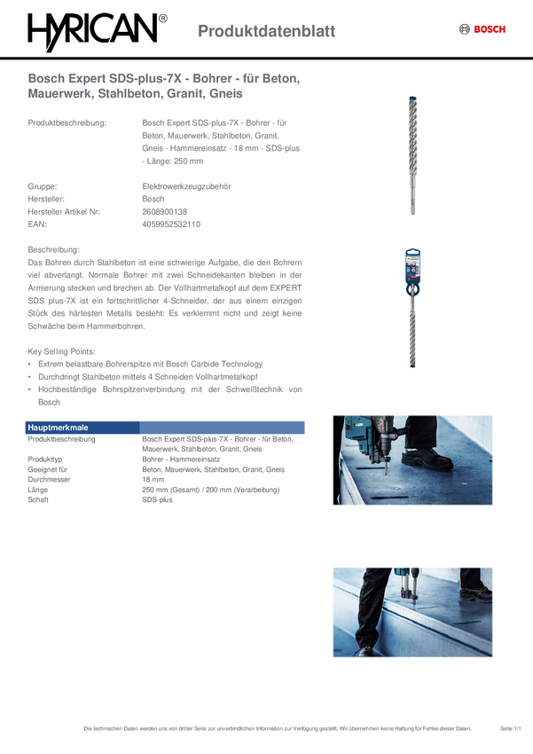 Wiertło udarowe Bosch Accessories EXPERT SDS plus-7X 2608900138 18.00 mm 1 szt.