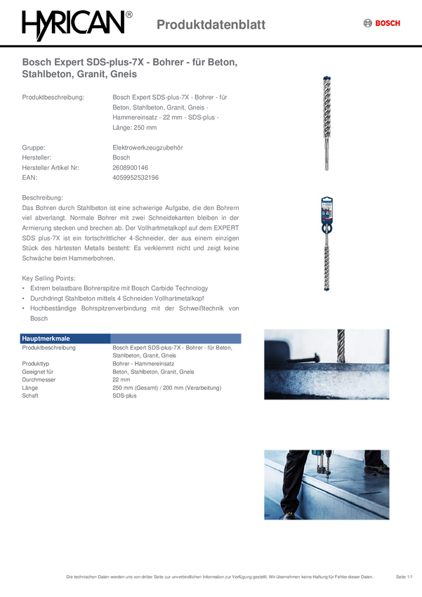 Wiertło udarowe Bosch Accessories EXPERT SDS plus-7X 2608900146 22.00 mm 1 szt.