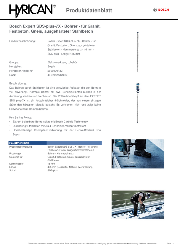 Wiertło udarowe Bosch Accessories EXPERT SDS plus-7X 2608900133 16.00 mm 1 szt.