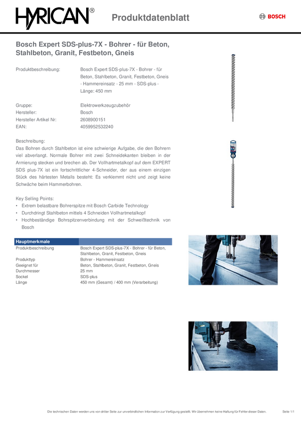 Wiertło udarowe Bosch Accessories EXPERT SDS plus-7X 2608900151 25.00 mm 1 szt.