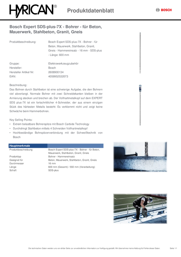 Wiertło udarowe Bosch Accessories EXPERT SDS plus-7X 2608900134 16.00 mm 1 szt.