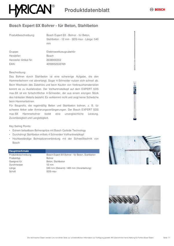 Wiertło udarowe Bosch Accessories EXPERT SDS max-8X 2608900202 12.00 mm 1 szt.