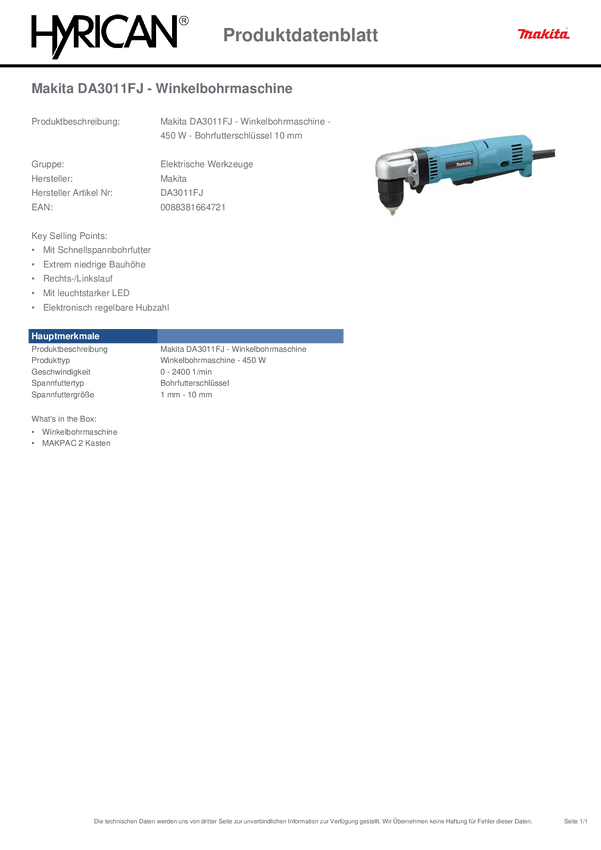 Wiertarka kątowa Makita S_0380_2513174 DA3011FJ 450 W