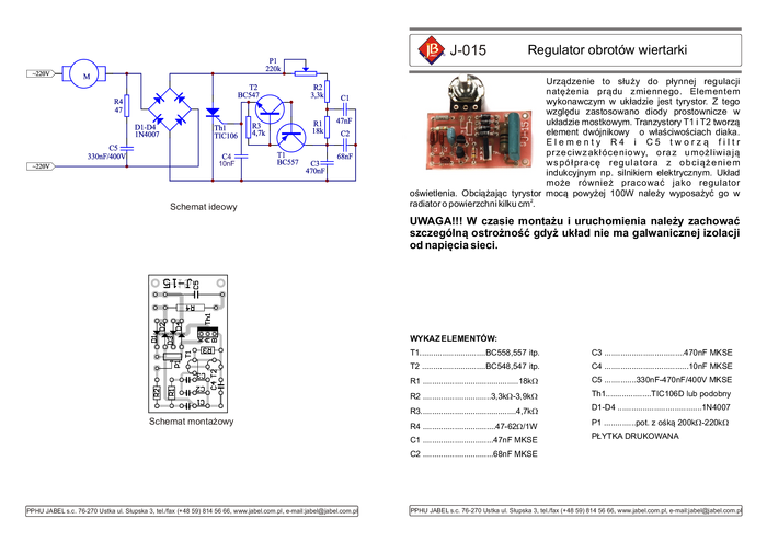 J-015 Regulator obrotów wiertarki - zestaw do montażu