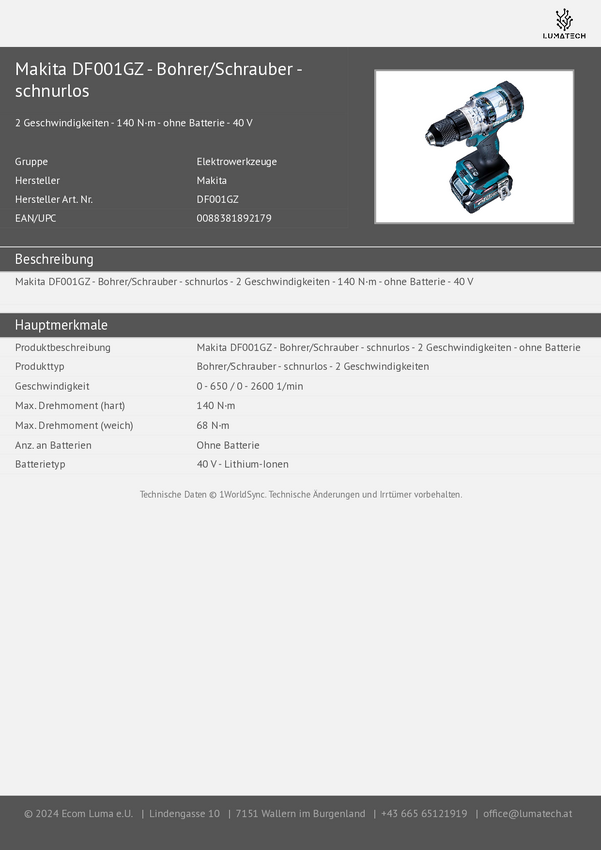 Wiertarko-wkrętarka akumulatorowa Makita S_0380_7114600 DF001GZ 40 V