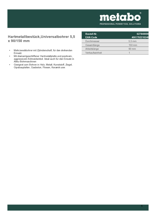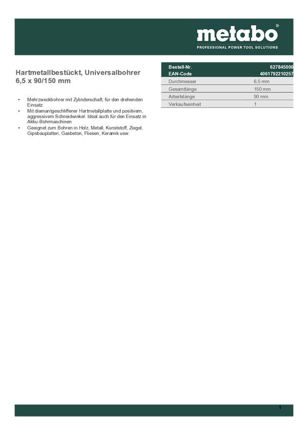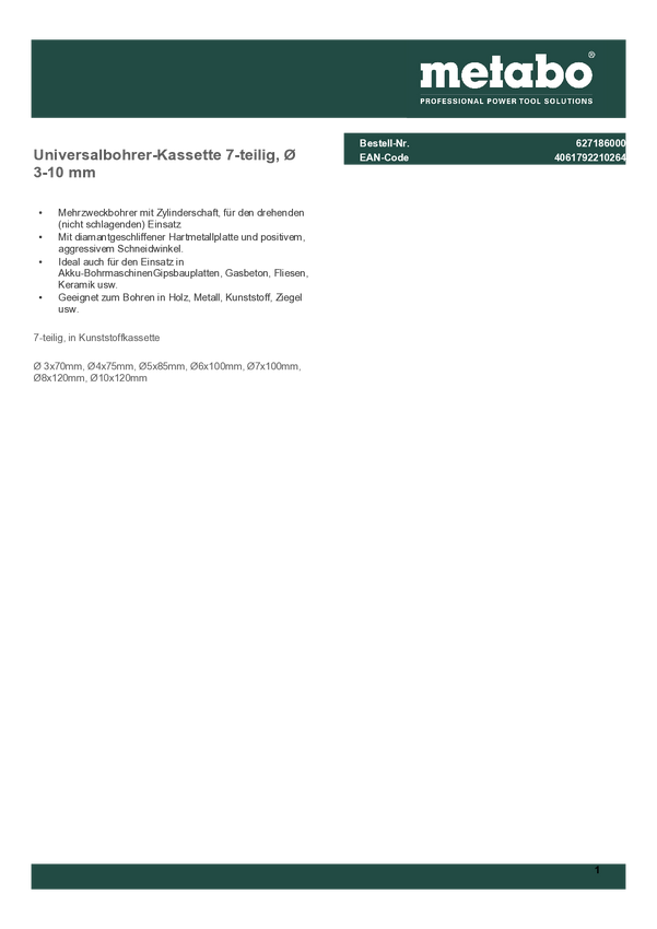 Komplet wierteł diamentowych do wiercenia na sucho Metabo Dry 628321000 1 szt.