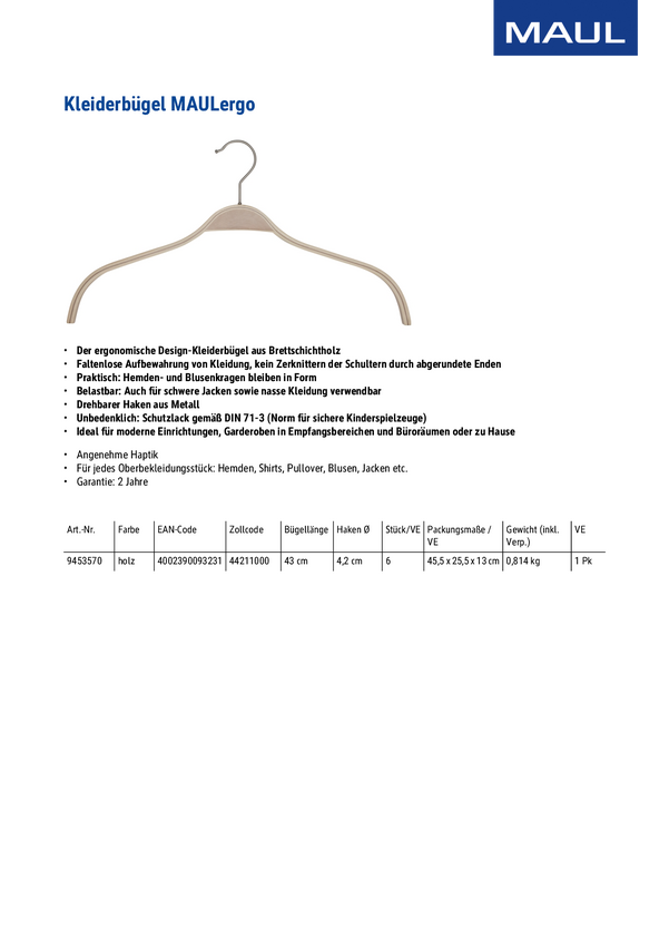 Wieszak Maul MAULergo 9453570, 6 szt.