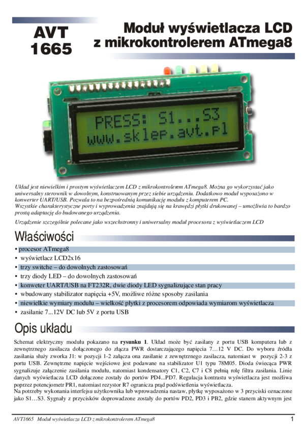 AVT1665 Moduł wyświetlaczA LCD z ATmega8