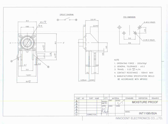 Odporny na wilgoć łącznik , , o sile nacisku 250gf,
