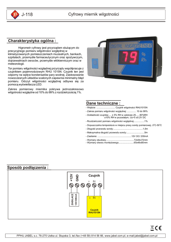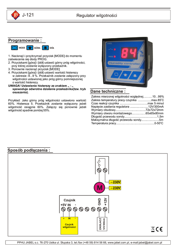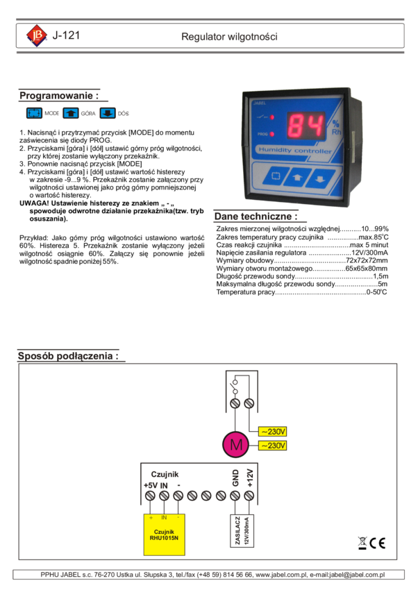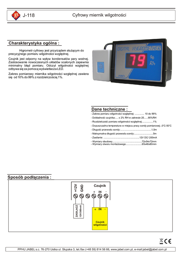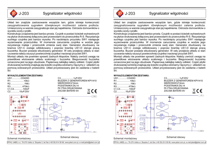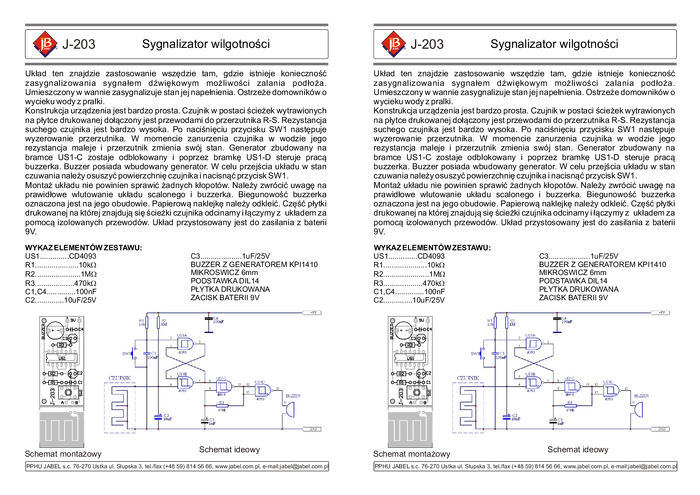 J-203 Sygnalizator wilgoci - zestaw do montażu