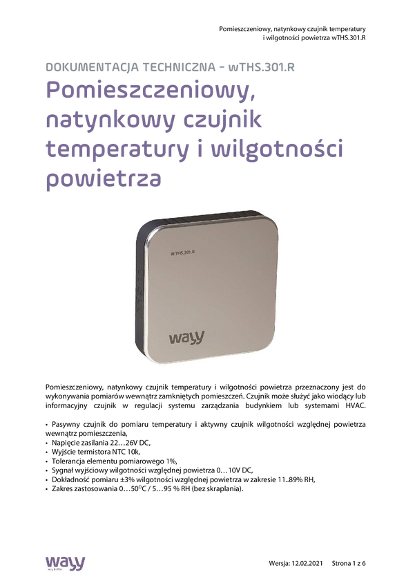 Natynkowy czujnik temperatury i wilgotności powietrza wTHS.301.R
