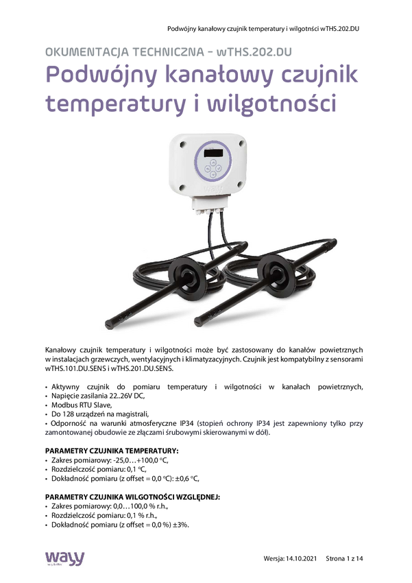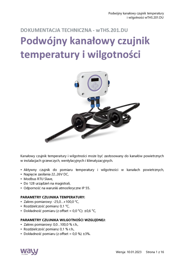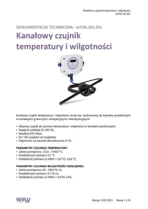Kanałowy czujnik temperatury i wilgotności wTHS.101.DU
