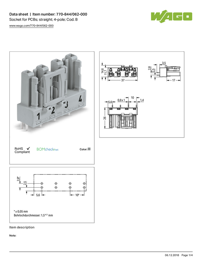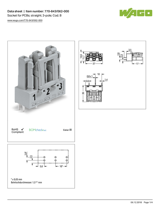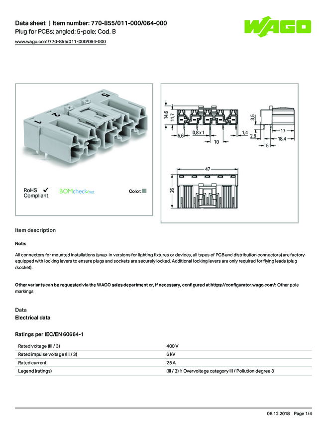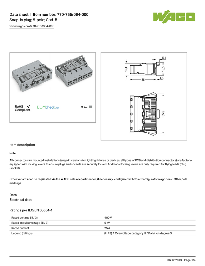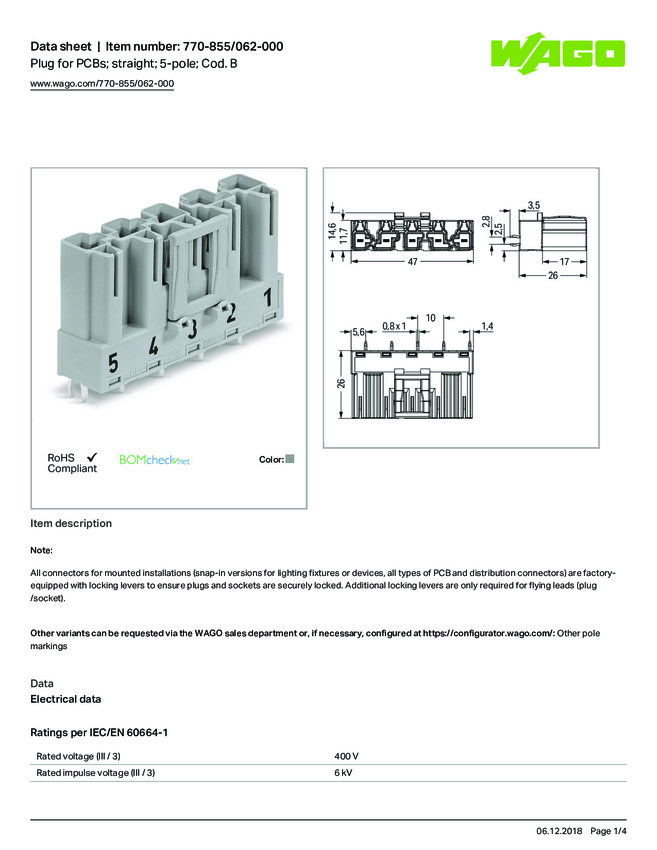 WAGO 770-855/062-000 Złącze męskie sieciowe WINSTA MIDI złącze męskie do wbudowania pionowego Łączna ilość styków: 5 25