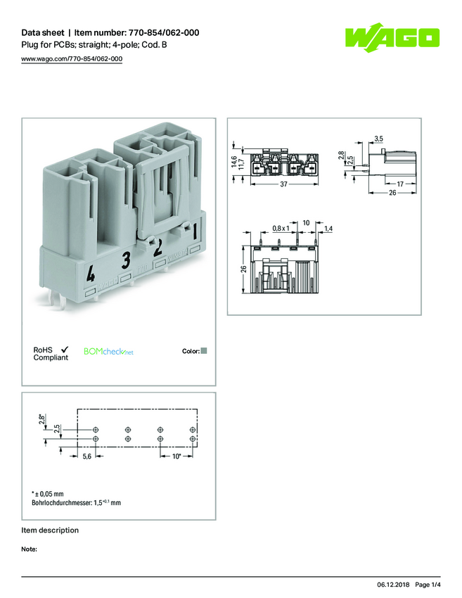 WAGO 770-854/062-000 Złącze męskie sieciowe WINSTA MIDI, styki: 4, 400 V, 25 A, 50 szt.