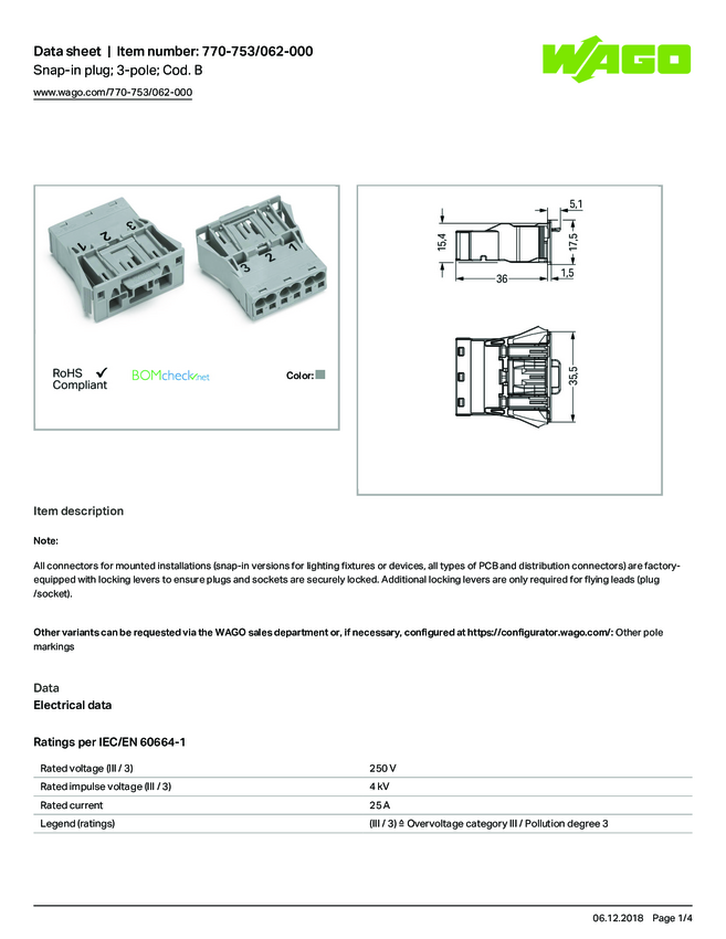WAGO 770-753/062-000 Złącze męskie sieciowe WINSTA MIDI, styki: 3, 250 V, 25 A, 100 szt.