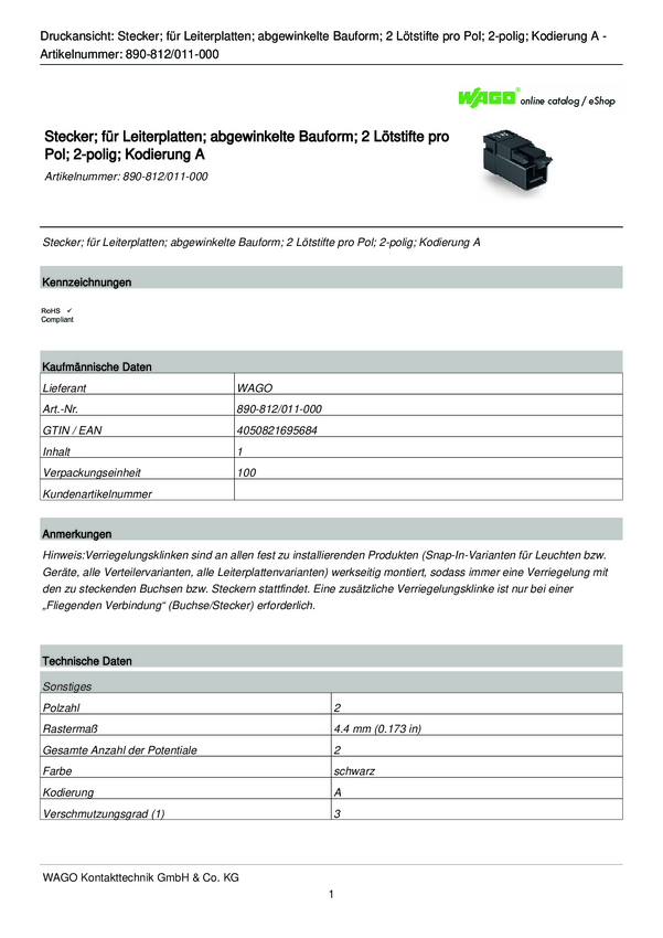 WAGO 890-812/011-000 Złącze męskie sieciowe WINSTA MINI złącze męskie do wbudowania poziomego Łączna ilość styków: 2 16