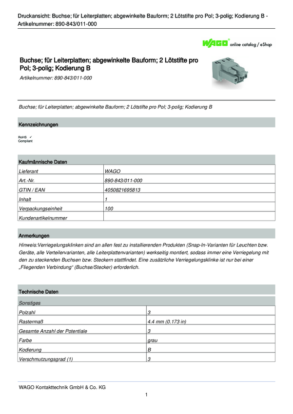 WAGO 770-895/011-000/080-000 Złącze męskie sieciowe WINSTA MIDI złącze męskie do wbudowania poziomego Łączna ilość stykó