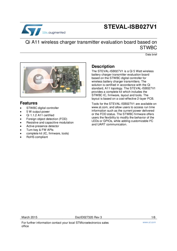 Qi A11 wireless charger transmitter evaluation board based on STWBC