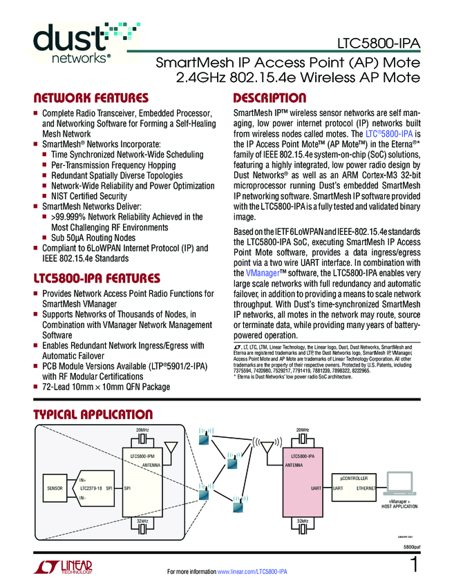 SmartMesh IP Wireless 802.15.4e System-on-Chip