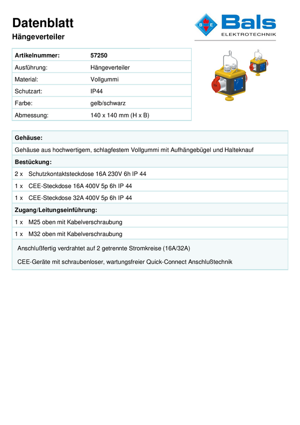 Rozdzielacz wiszący CEE Bals Elektrotechnik 57250