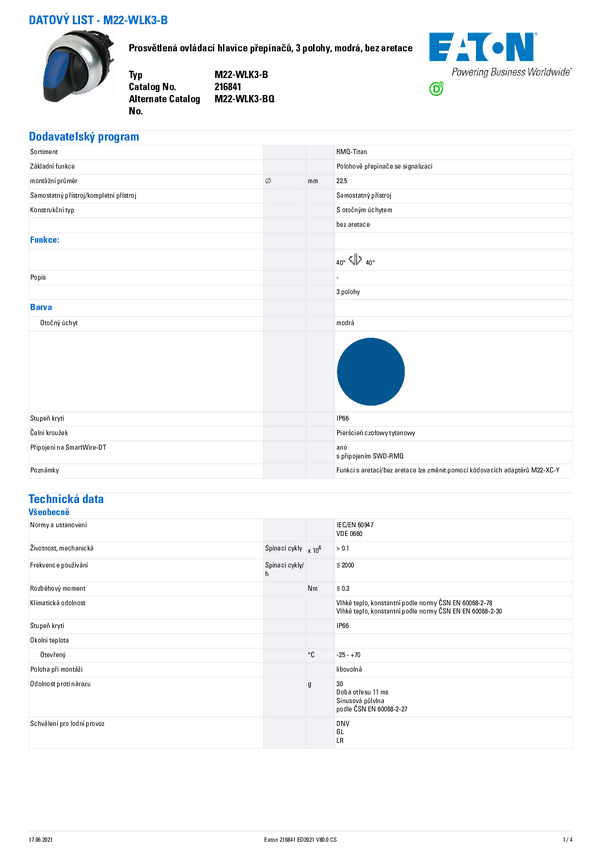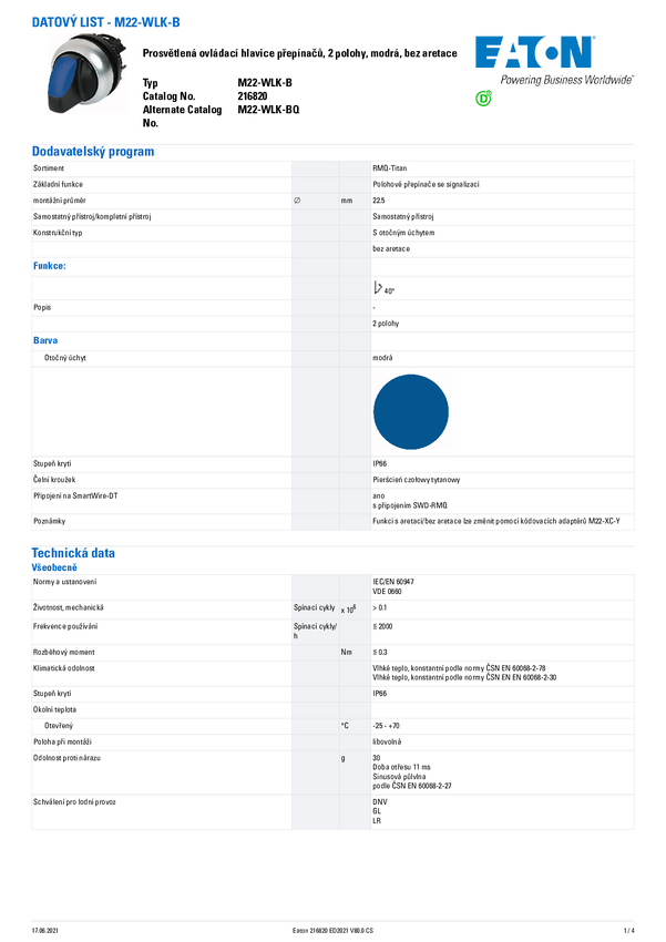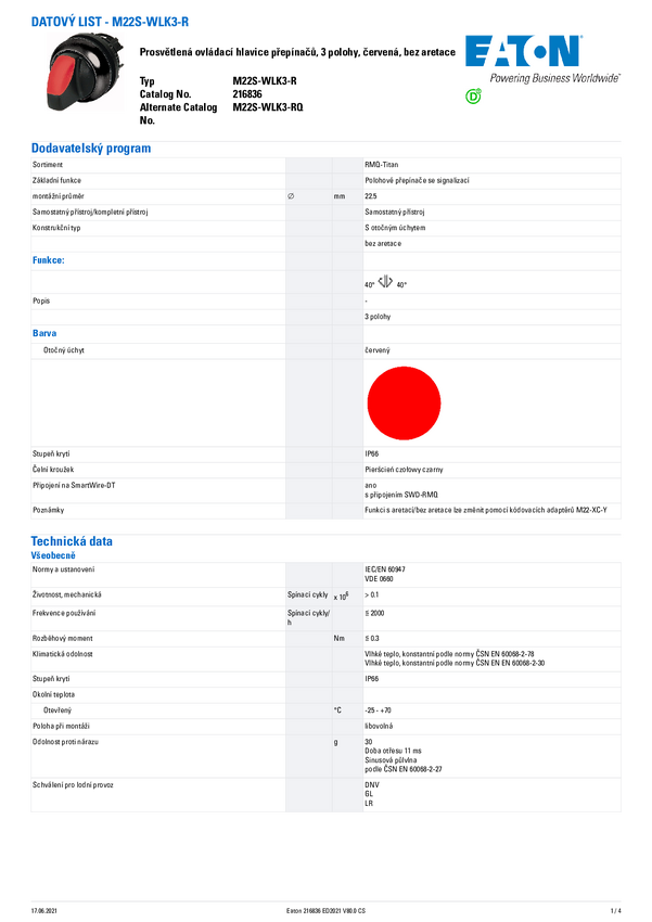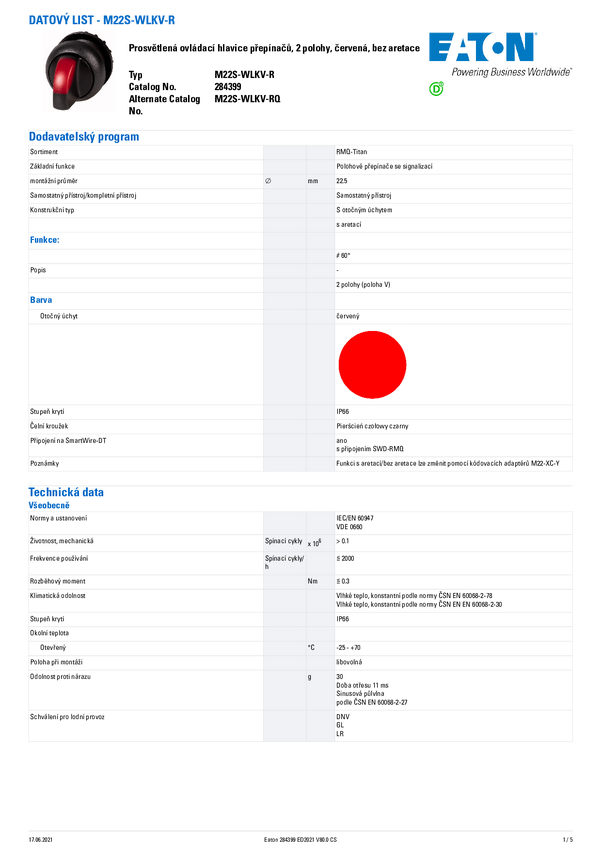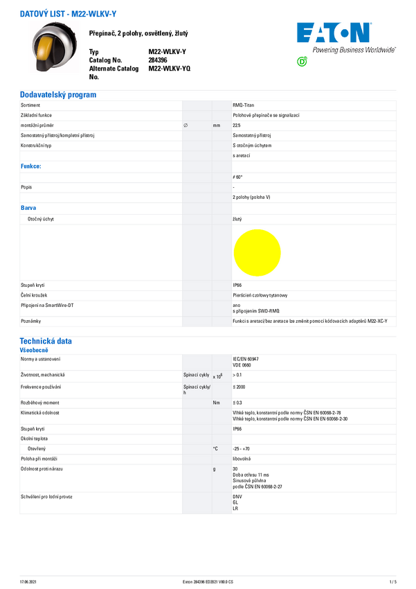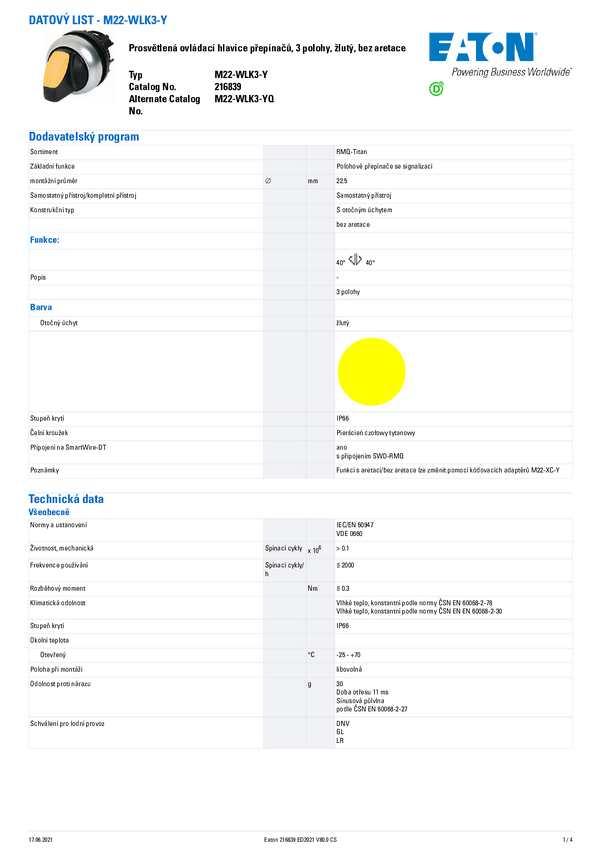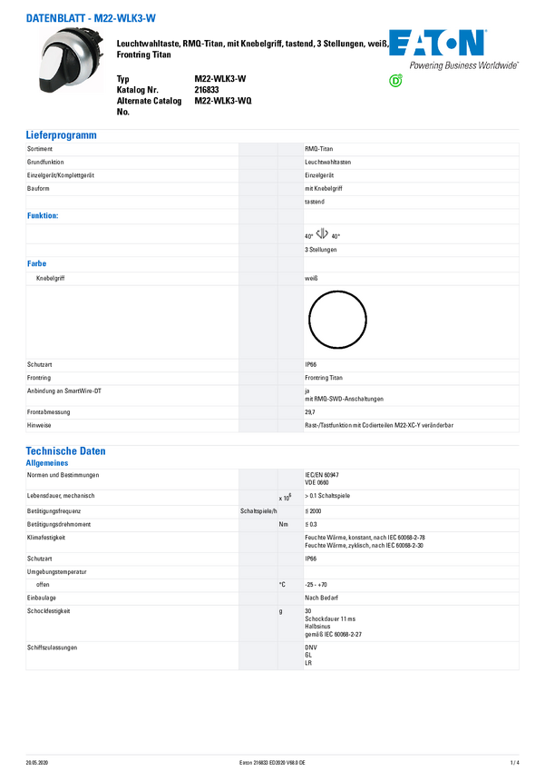Eaton 284544 M22S-WLKV-B Przełącznik ścienny 1 szt.