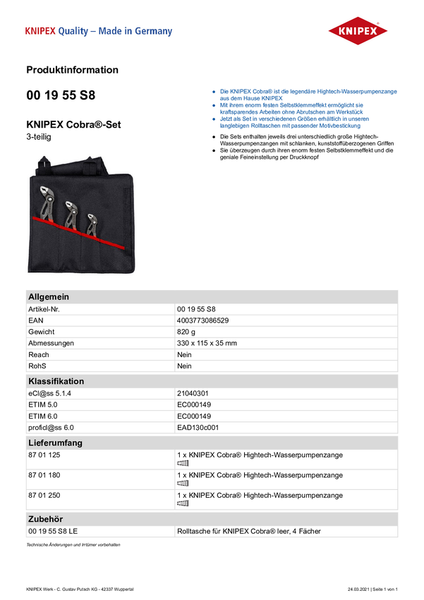 Zestaw szczypiec do pomp wodnych Knipex 00 19 55 S8