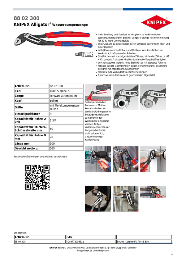 Szczypce do pomp wodnych Knipex Alligator 88 02 300 300 mm