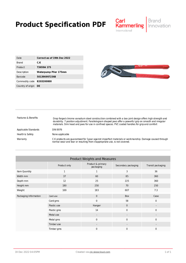 Szczypce do pomp wodnych C.K T3659A 175 180 mm