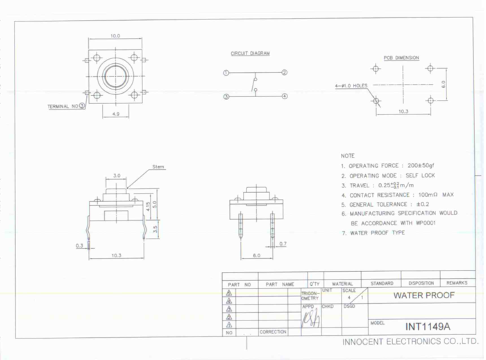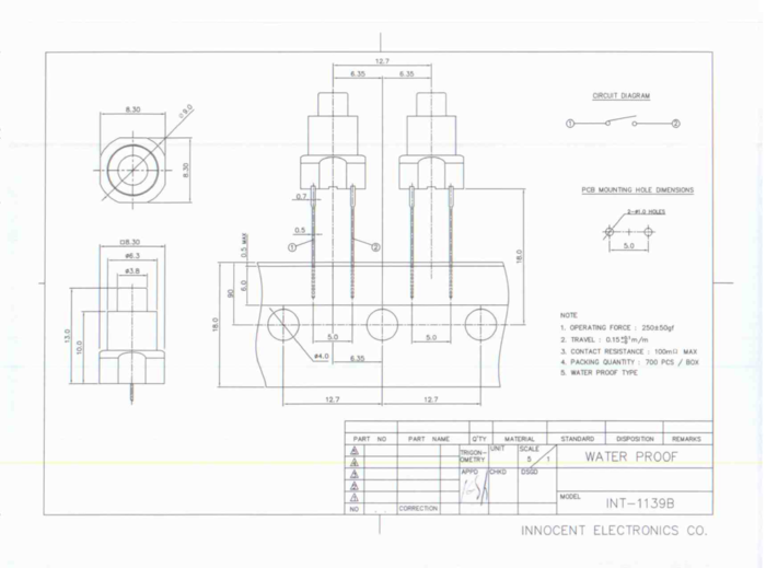 Wodoodporny łącznik, , o sile nacisku 250gf,