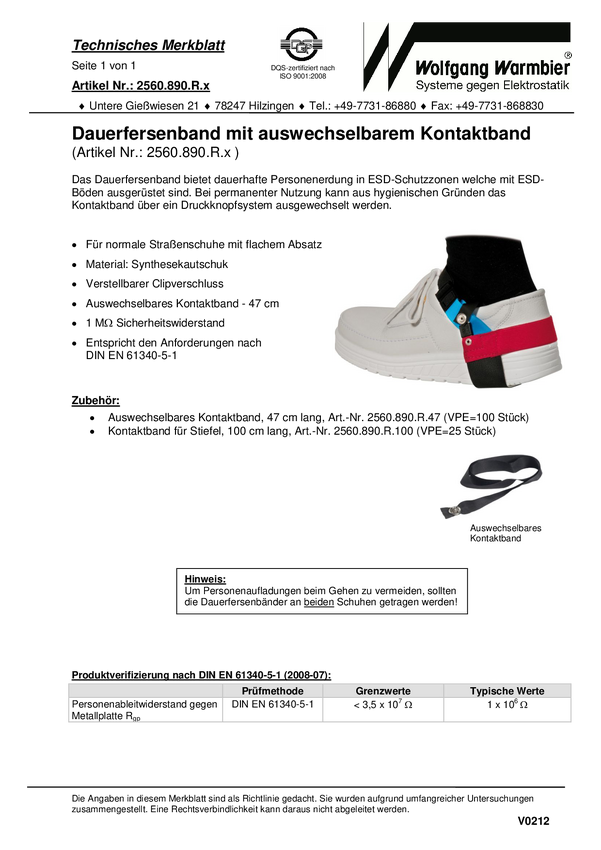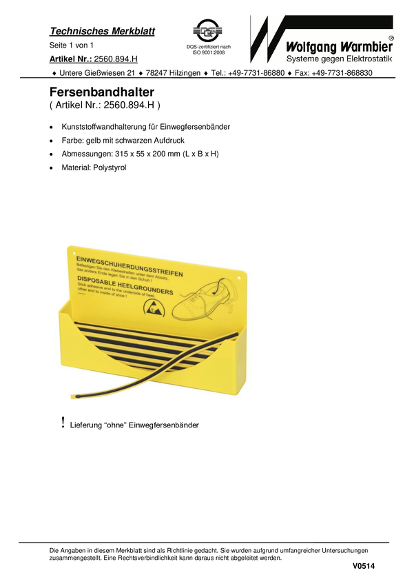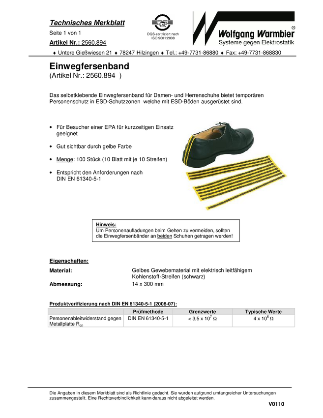 Wolfgang Warmbier Pasek ESD do butów, jednorazowy 1 szt. żółty, czarny 2560.894