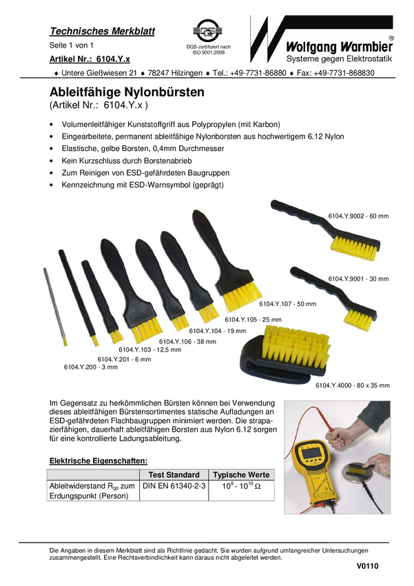Pędzel ESD Wolfgang Warmbier 6104.Y.105 Długość obszaru szczotki: 25 mm