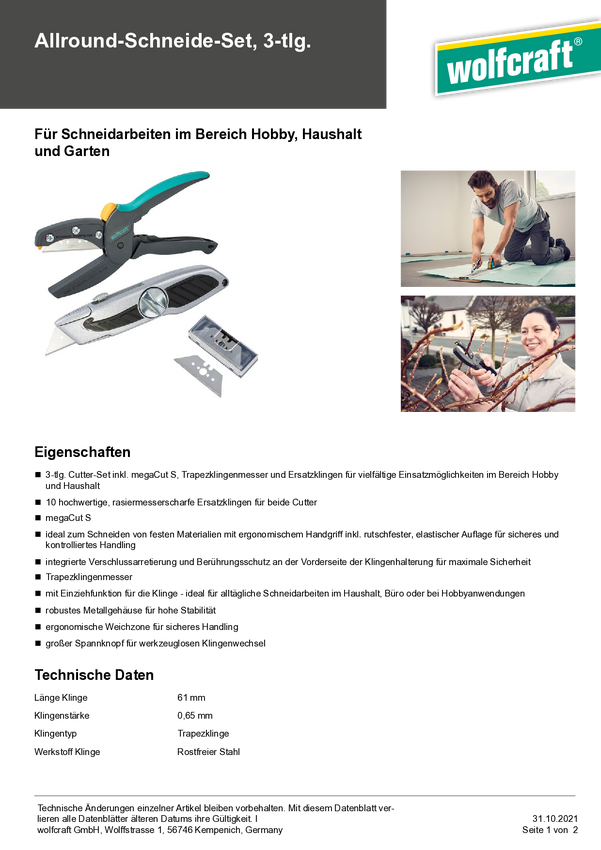 Uniwersalny zestaw do cięcia, 3-częściowy. Wolfcraft 4325000 1 zest.