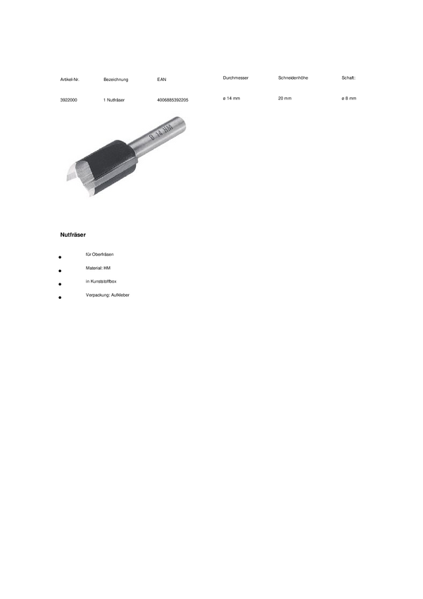 Wolfcraft 3922000 Frez do nakrętek węglik spiekany Średnica produktu 14 mm Średnica wiertła 8 mm