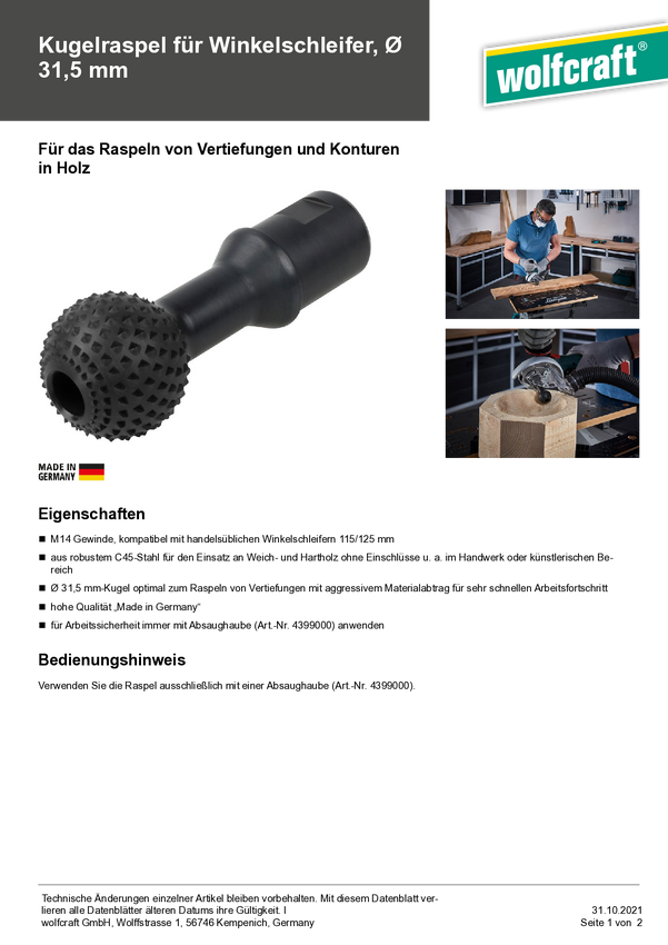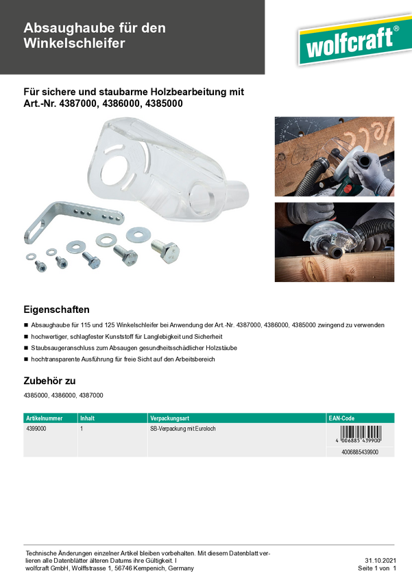 Okap odciągowy do szlifierki kątowej Wolfcraft 4399000