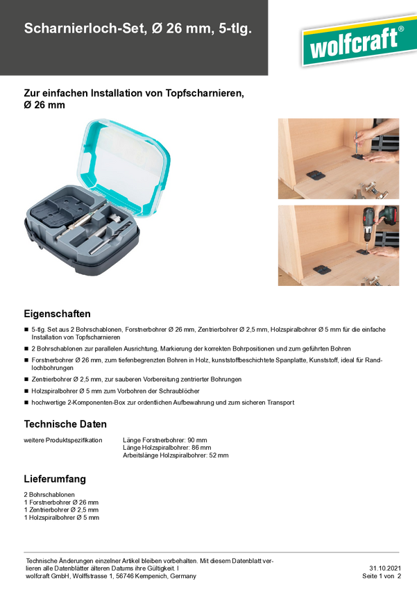 Zestaw do obróbki drewna Wolfcraft 4400000 1 zest.