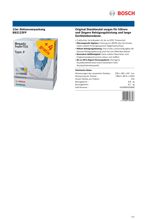 Bosch Haushalt BBZ10TFG Worki do odkurzacza 1 szt.