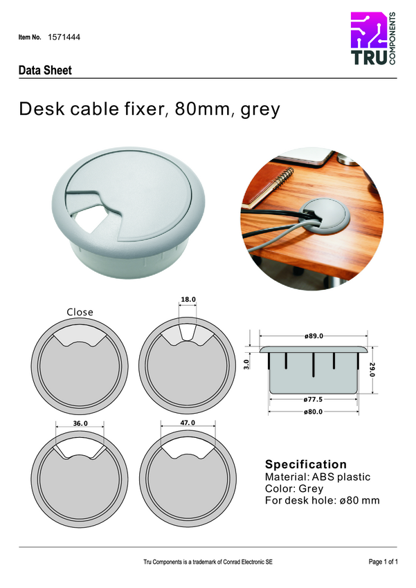 TRU COMPONENTS 452677-GY Przepust kablowy WP80BK, (Ø x W) 89 mm x 29.5 mm, ABS, 1 szt.