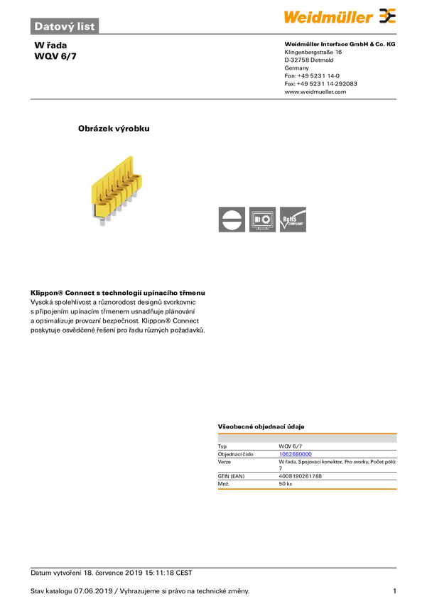 Łącznik krzyżowy Weidmüller WQV 6/7 1062680000, 50 szt.