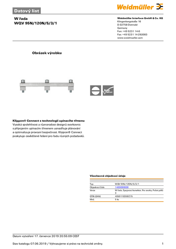 Łącznik krzyżowy Weidmüller WQV 95N/120N/5/3/1 1469090000, 5 szt.