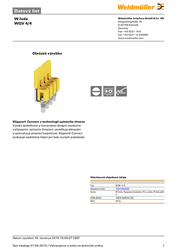 Łącznik krzyżowy Weidmüller WQV 4/4 1054660000-50, 50 szt.