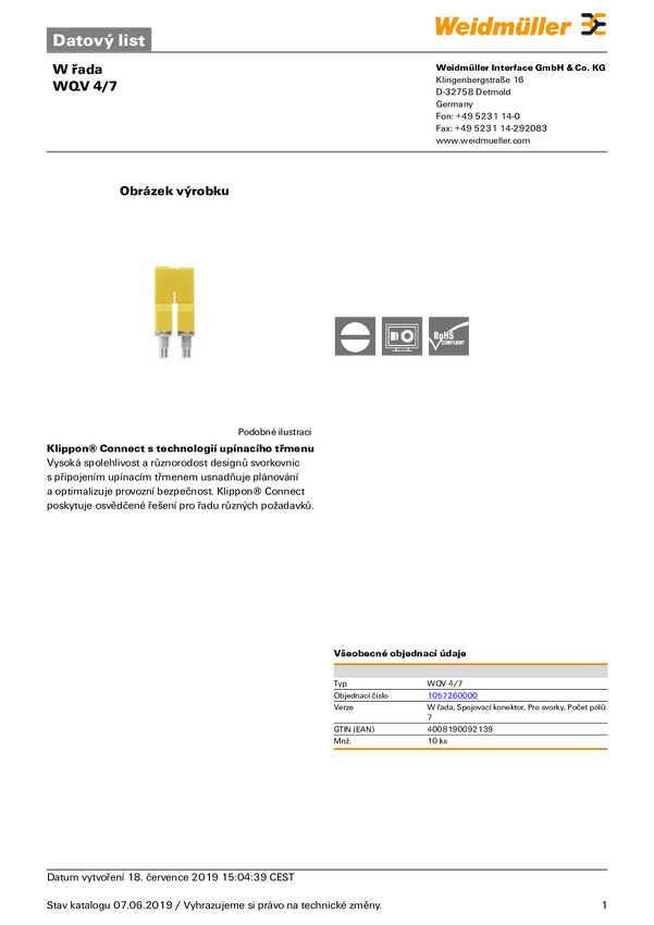 Łącznik krzyżowy Weidmüller WQV 4/7 1057260000, 10 szt.