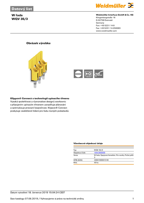 Łącznik krzyżowy Weidmüller WQV 35/3 1055360000, 50 szt.